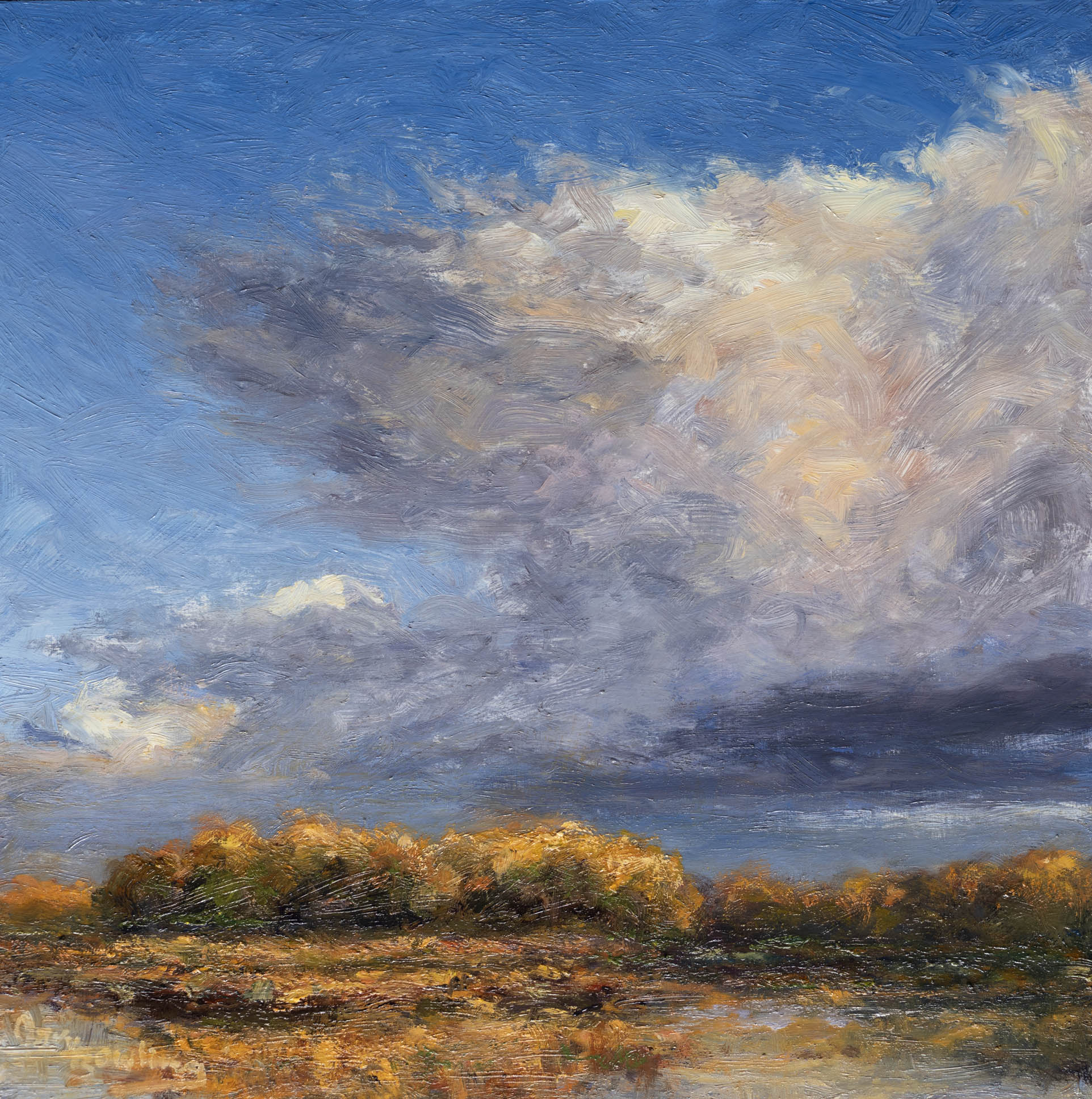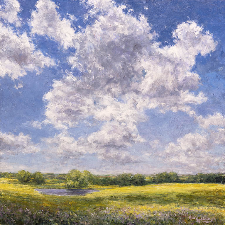 Desert Grasslands with Passing Clouds 2Oil on Panel — 1 Panel, 18 inches high BY 18 inches wide each — Installed width = 18 inches