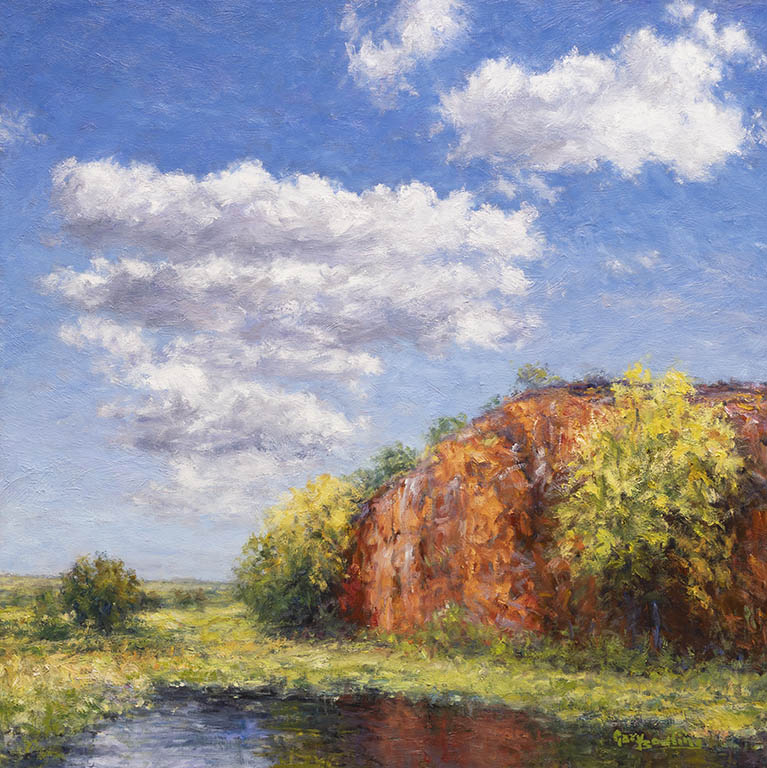 Where Clouds Make SkyOil on Canvas — 1 Panel 34 inches high BY 34 inches wide each — Installed width = 34 inches