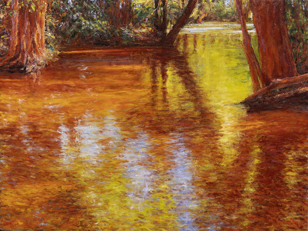 Reflections from the WoodsOil on Canvas — 1 Panel, 20 inches high BY 20 inches wide each — Installed width = 20 inches