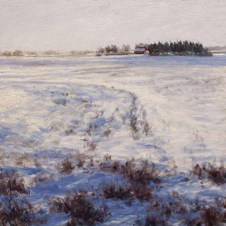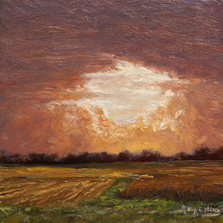Prairie Center EveningOil on Panel — 1 Panel 10 inches high BY 10 inches wide each — Installed width = 10 inches
