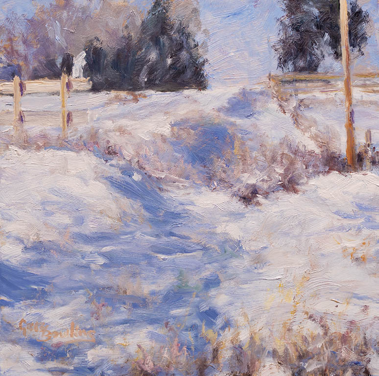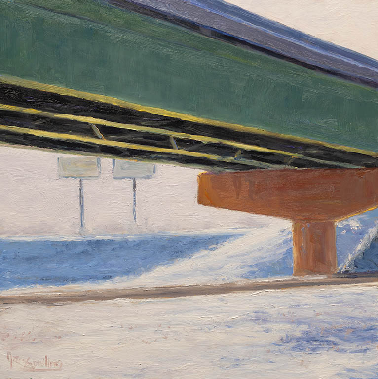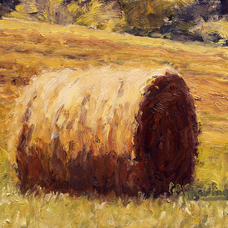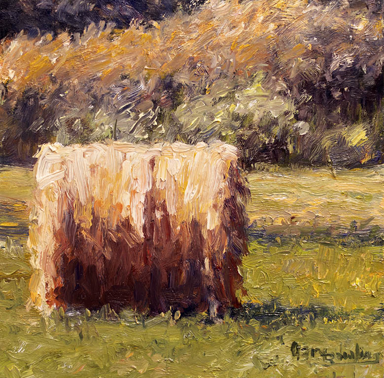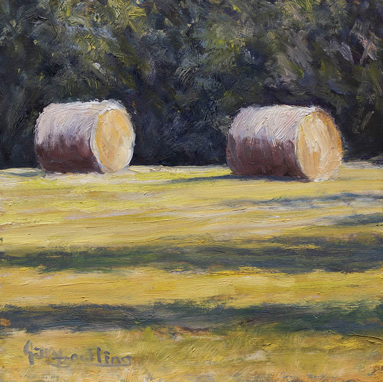 Shadows and Two BalesOil on Panel — 1 Panel 10 inches high BY 10 inches wide each — Installed width = 10 inches