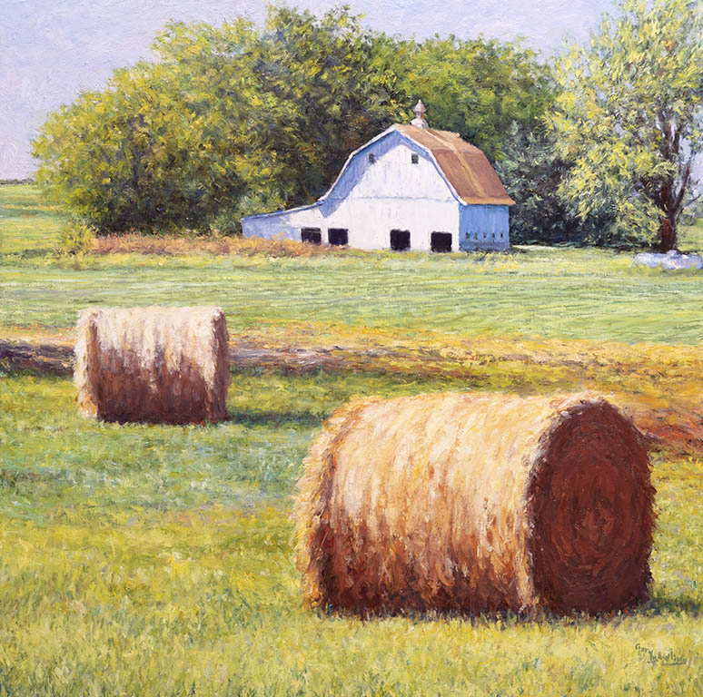 Evening Covering Hay MeadowOil on Canvas — 1 Panel 16 inches high BY 16 inches wide each — Installed width = 16 inches