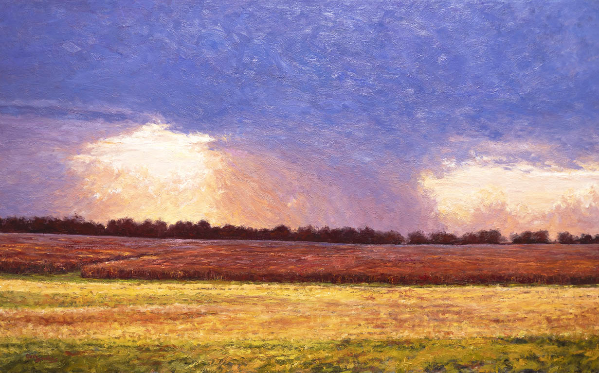 Clouds Passing the Hay MeadowOil on Canvas — 1 Panel, 38 inches high BY 68 inches wide each — Installed width = 68 inches