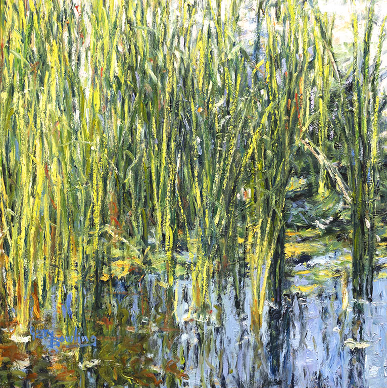 Lost In The ReedsOil on Panel — 1 Panel 18 inches high BY 18 inches wide each — Installed width = 18 inches