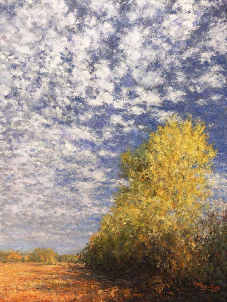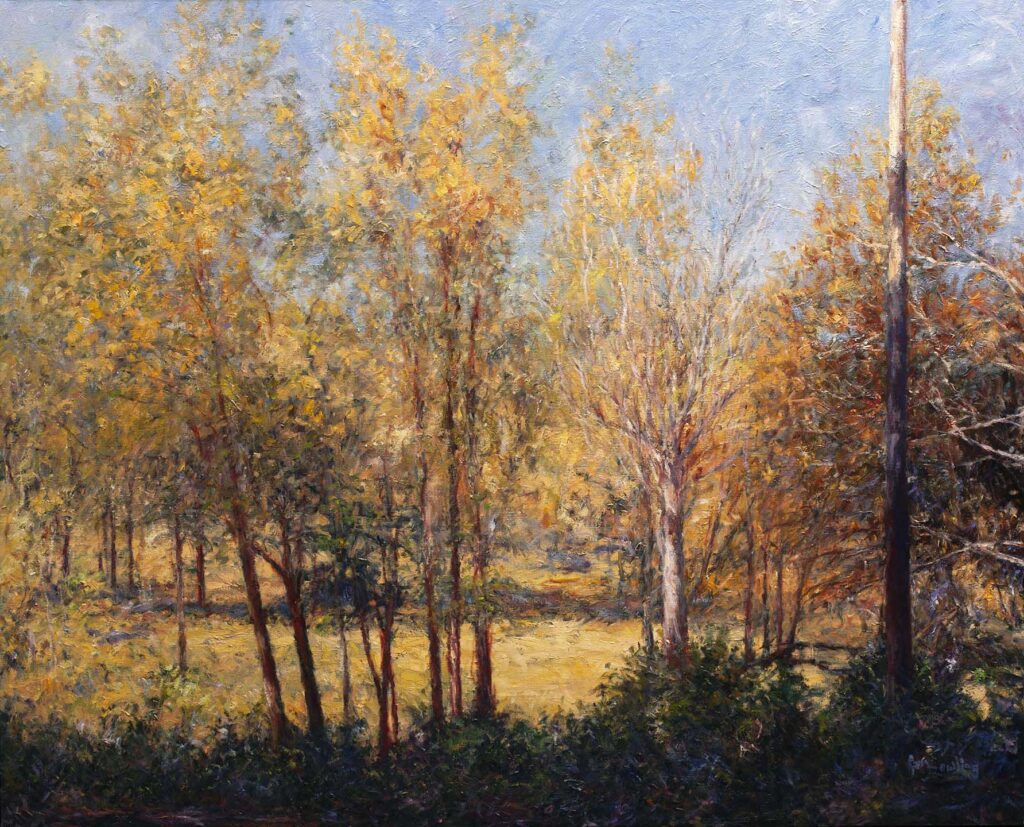 Windbreak Shadows Fall FieldsOil on Canvas — 1 Panel 40 inches high BY 30 inches wide each — Installed width = 30 inches