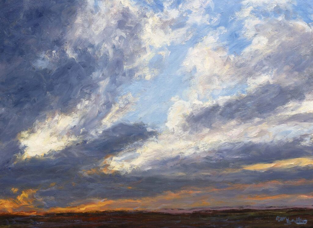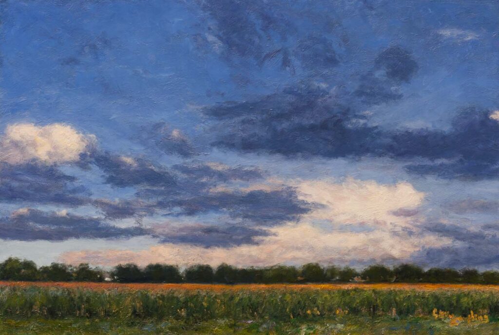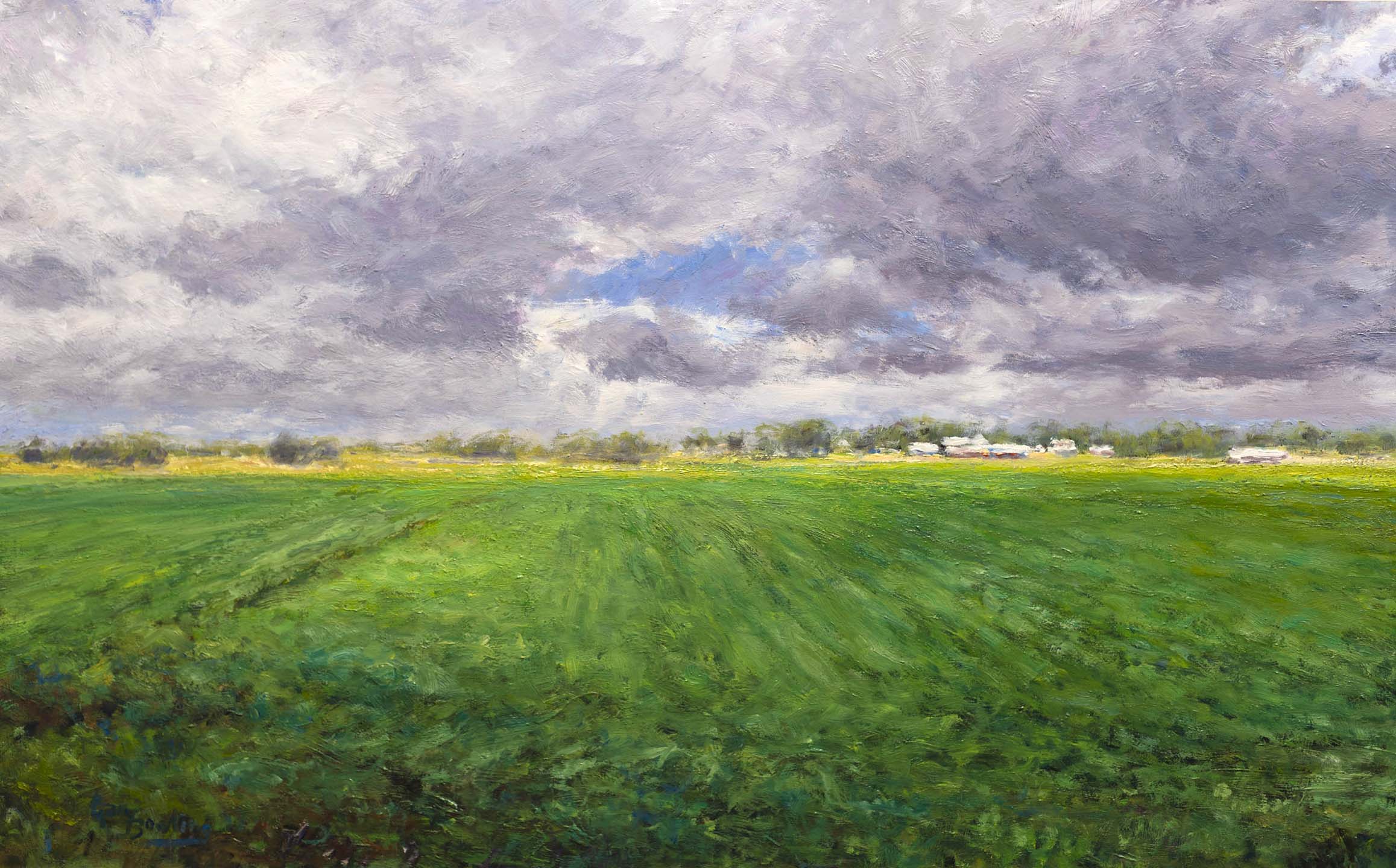 Meadows Resting Below Drifting CloudsOil on Canvas — 1 Panel 30 inches high BY 40 inches wide each — Installed width = 40 inches